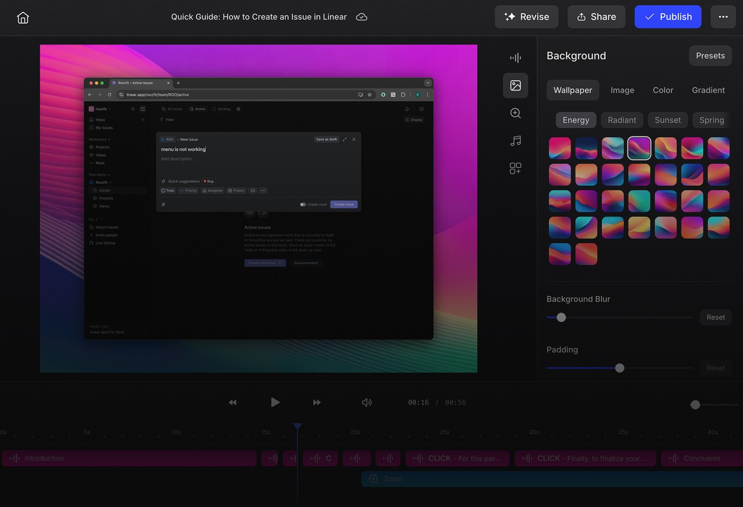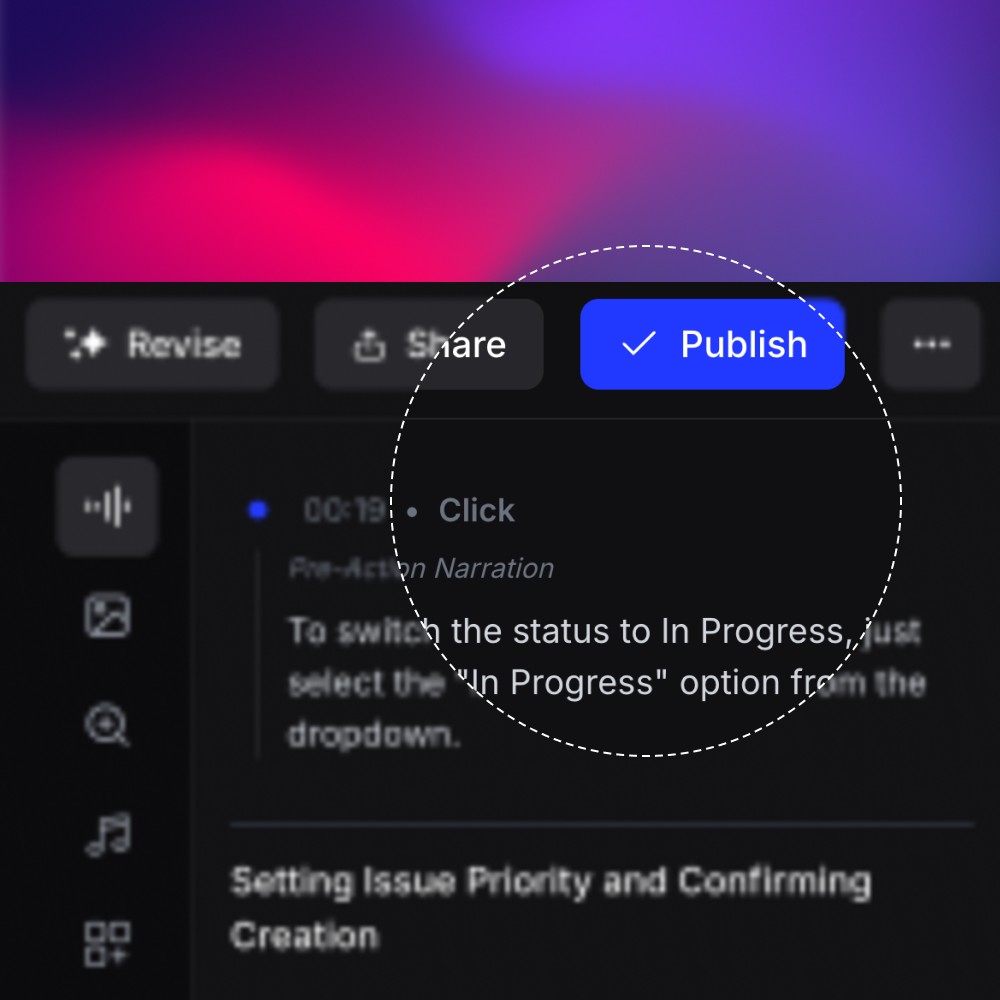 Native OS recorder for crisp video, live-updating embeds, and a finished result the moment you stop recording.