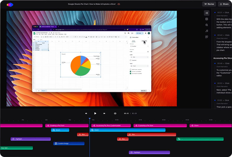 | AI narration writer | Context-aware narration written for every action and transition | Basic summary, incomplete and often unsynced |