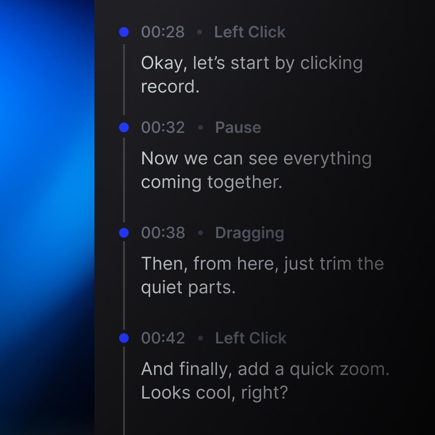 Pacing, pauses, misclicks, and sync are handled automatically. No manual syncing needed.