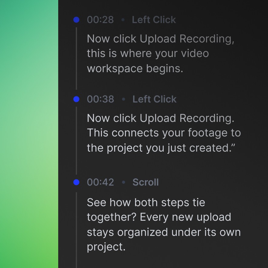 Loom records everything as-is. Clevera automatically zooms in on key actions and zooms out for context, guiding viewers’ attention exactly where it matters.